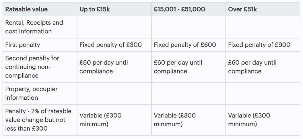 - False information penalties: providing incorrect or misleading data could result in fines of up to £500 plus 3% of the property’s rateable value.