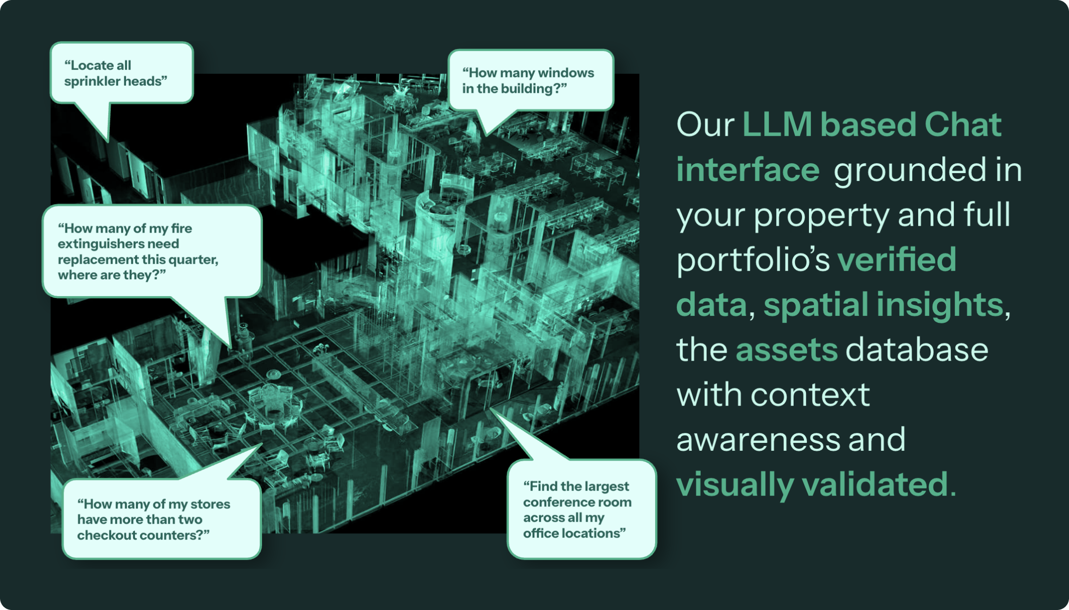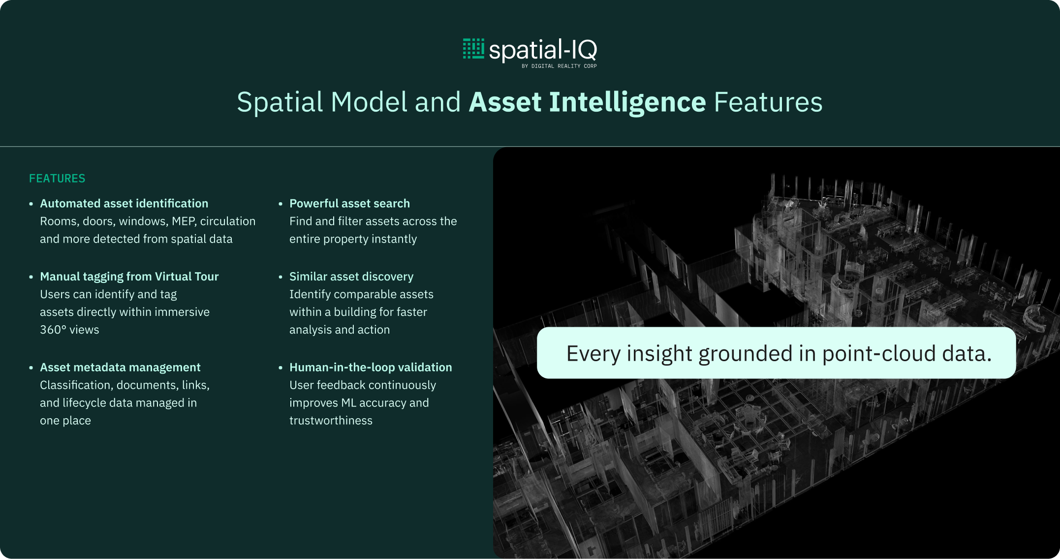 All spatial data, assets, and insights are connected through verified point-cloud intelligence.