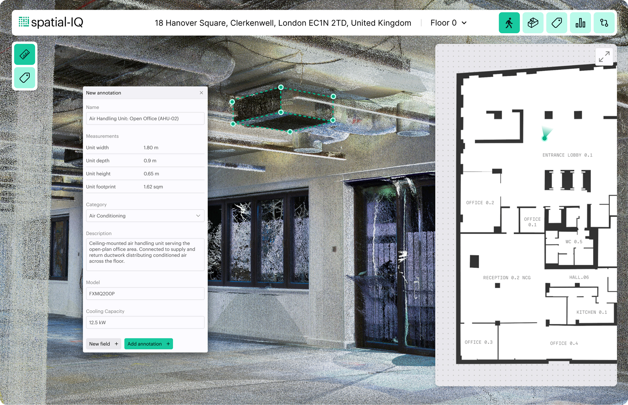 AI identifies rooms, systems, and infrastructure directly from spatial capture.